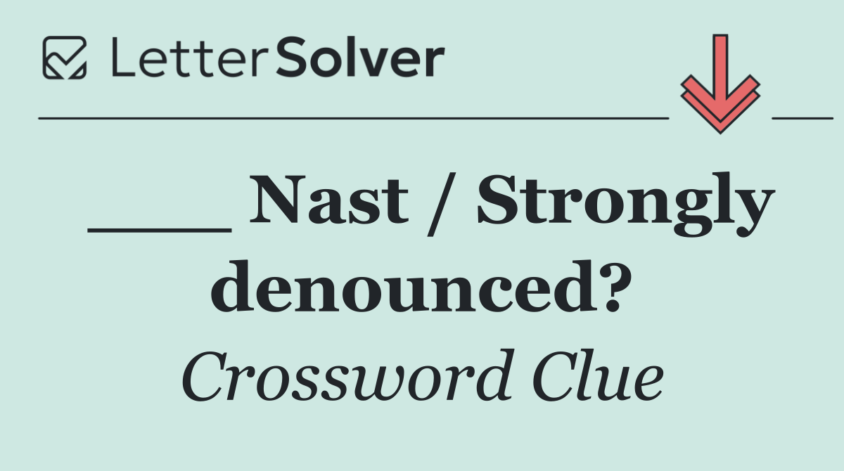 Uncover the answer to the Universal puzzle's ___ Nast / Strongly denounced? clue right here! We cracked the code and found the 5-letter word, the exact solution to help you solve this clue and finish your daily challenge. Ready to reveal it?