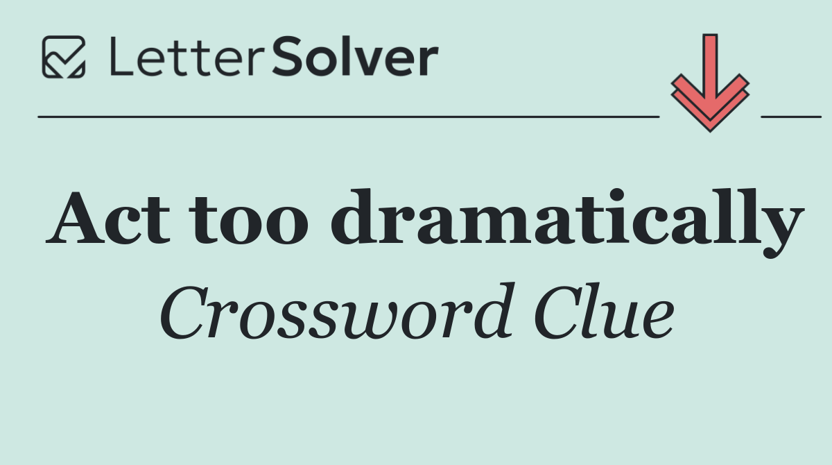 We specialize in solving many of your favorite puzzles, including the New York Times, USA Today, LA Times, Daily Themed Crosswords, and more. The "Act too dramatically" clue from the Universal puzzle, June 20 edition, is one such example.