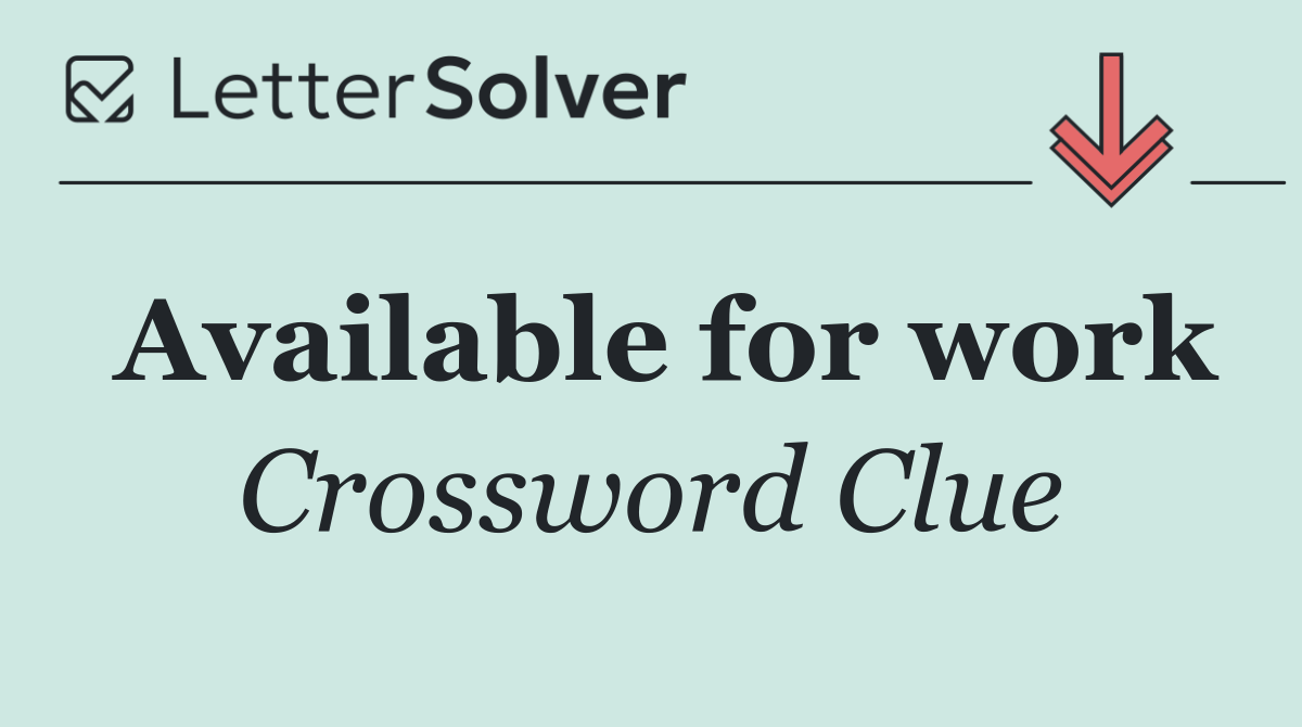 We specialize in solving many of your favorite puzzles, including the New York Times, USA Today, LA Times, Daily Themed Crosswords, and more. The "Available for work" clue from the Universal puzzle, May 13 edition, is one such example.