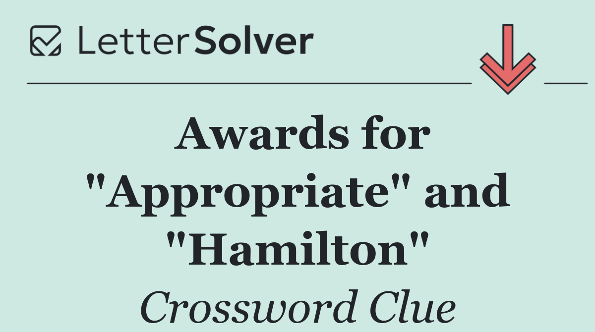 Uncover the answer to the Universal puzzle's Awards for "Appropriate" and "Hamilton" clue right here! We cracked the code and found the 5-letter word, the exact solution to help you solve this clue and finish your daily challenge. Ready to reveal it?