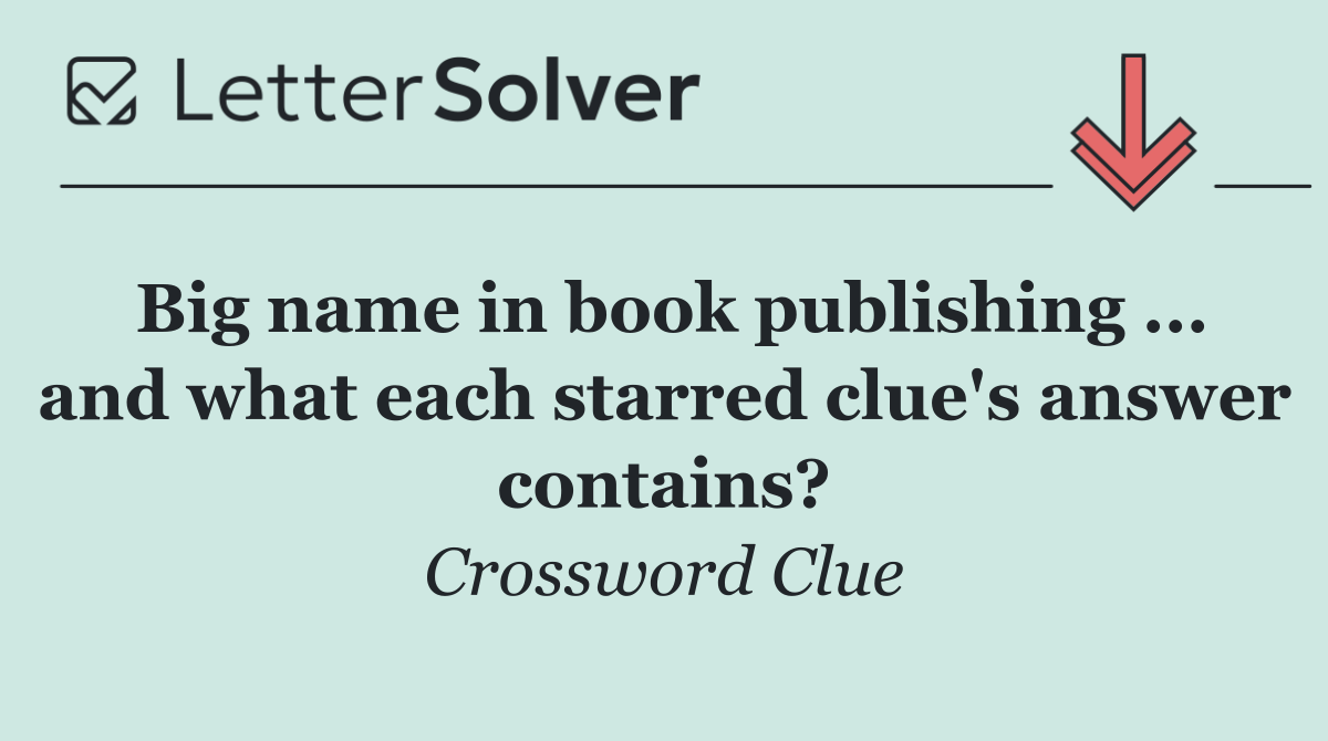 Uncover the answer to the Universal puzzle's Big name in book publishing ... and what each starred clue's answer contains? clue right here! We cracked the code and found the 9-letter word, the exact solution to help you solve this clue and finish your daily challenge. Ready to reveal it?
