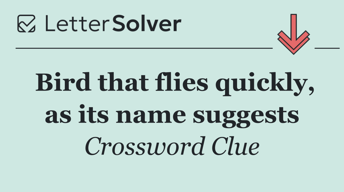 We specialize in solving many of your favorite puzzles, including the New York Times, USA Today, LA Times, Daily Themed Crosswords, and more. The "Bird that flies quickly, as its name suggests" clue from the Universal puzzle, December 26 edition, is one such example.