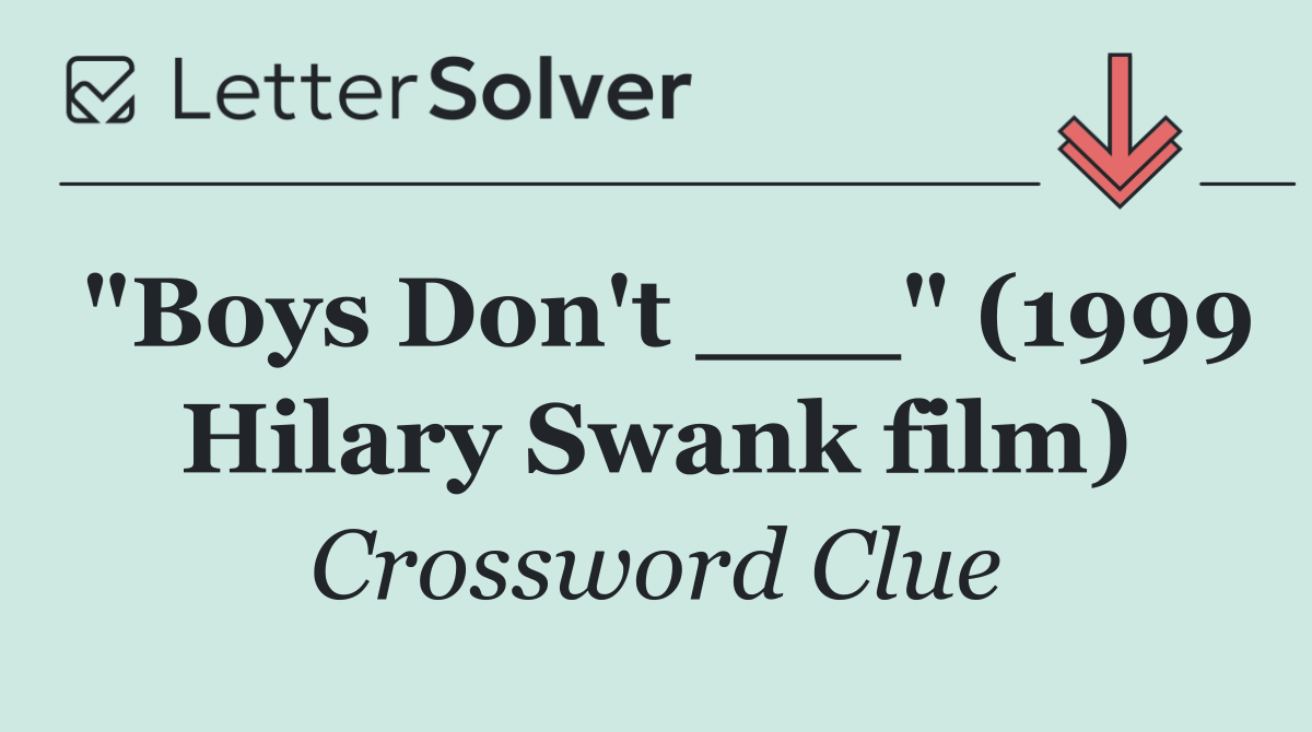 We specialize in solving many of your favorite puzzles, including the New York Times, USA Today, LA Times, Daily Themed Crosswords, and more. The ""Boys Don't ___" (1999 Hilary Swank film)" clue from the Universal puzzle, June 09 edition, is one such example.