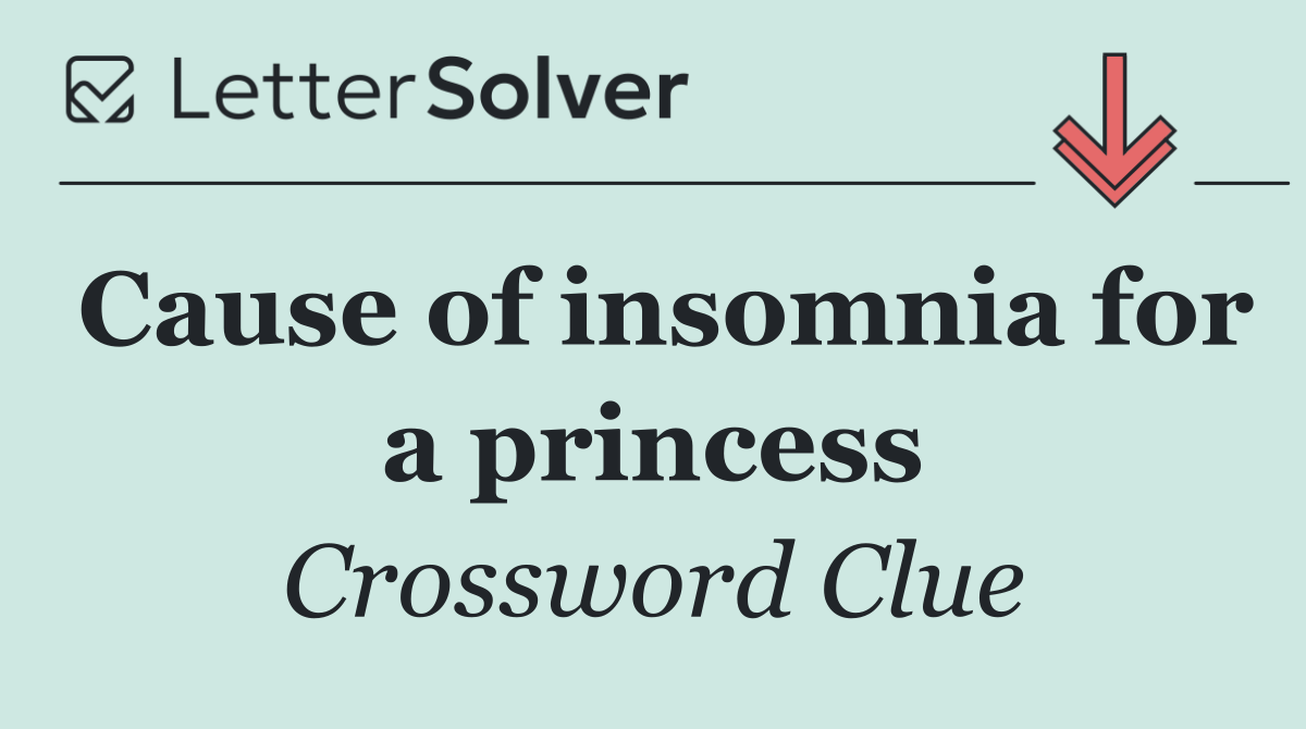 We specialize in solving many of your favorite puzzles, including the New York Times, USA Today, LA Times, Daily Themed Crosswords, and more. The "Cause of insomnia for a princess" clue from the Universal puzzle, June 02 edition, is one such example.