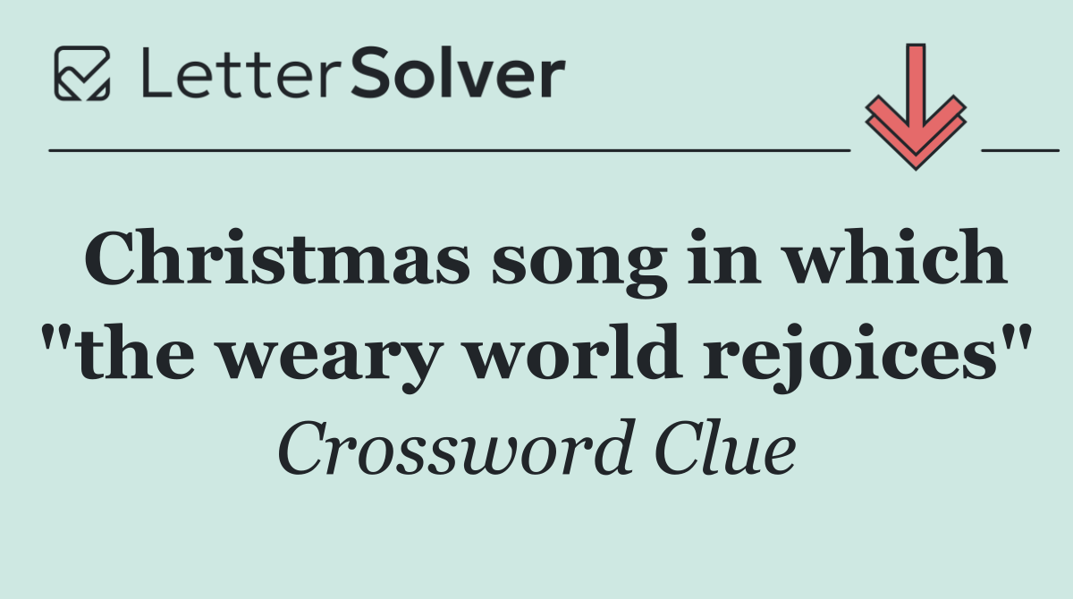 We specialize in solving many of your favorite puzzles, including the New York Times, USA Today, LA Times, Daily Themed Crosswords, and more. The "Christmas song in which "the weary world rejoices"" clue from the Universal puzzle, September 27 edition, is one such example.