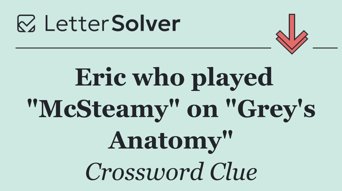 We specialize in solving many of your favorite puzzles, including the New York Times, USA Today, LA Times, Daily Themed Crosswords, and more. The "Eric who played "McSteamy" on "Grey's Anatomy"" clue from the Universal puzzle, June 14 edition, is one such example.