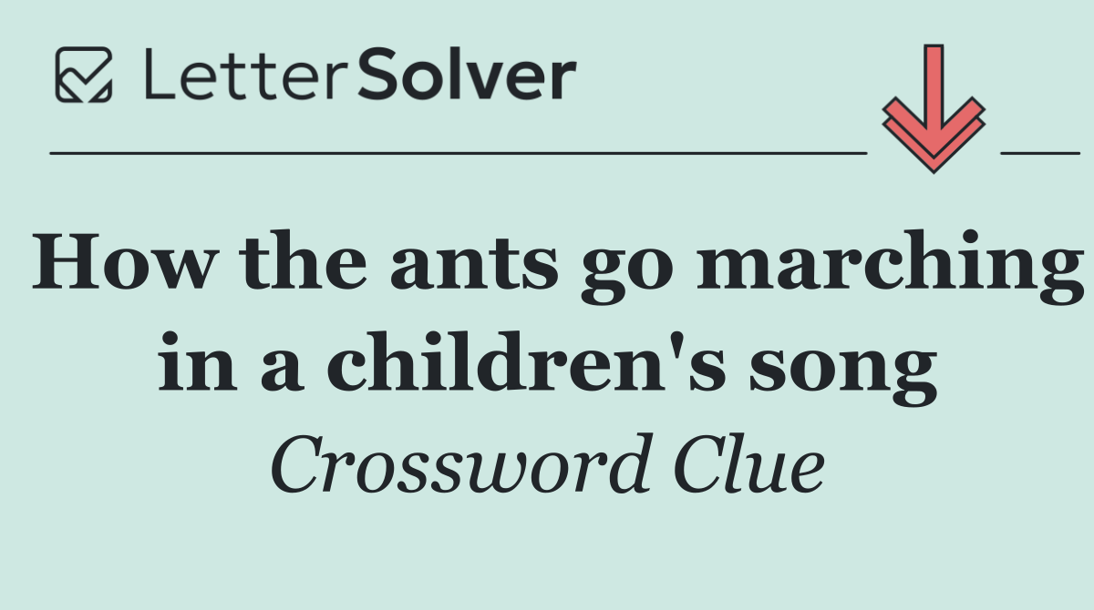 We specialize in solving many of your favorite puzzles, including the New York Times, USA Today, LA Times, Daily Themed Crosswords, and more. The "How the ants go marching in a children's song" clue from the Universal puzzle, July 23 edition, is one such example.