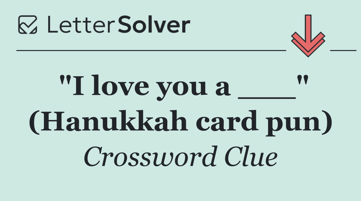 We specialize in solving many of your favorite puzzles, including the New York Times, USA Today, LA Times, Daily Themed Crosswords, and more. The ""I love you a ___" (Hanukkah card pun)" clue from the Universal puzzle, April 05 edition, is one such example.