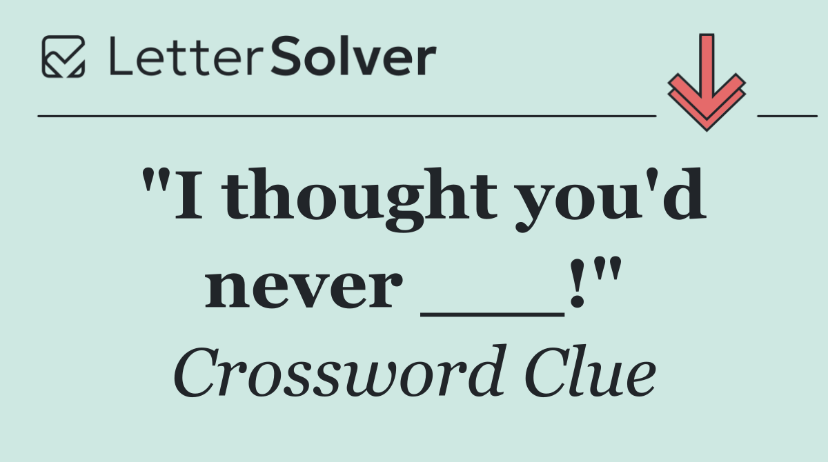 We specialize in solving many of your favorite puzzles, including the New York Times, USA Today, LA Times, Daily Themed Crosswords, and more. The ""I thought you'd never ___!"" clue from the Universal puzzle, November 25 edition, is one such example.