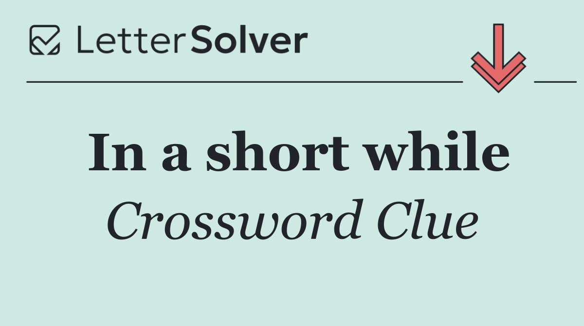 We specialize in solving many of your favorite puzzles, including the New York Times, USA Today, LA Times, Daily Themed Crosswords, and more. The "In a short while" clue from the Universal puzzle, June 08 edition, is one such example.