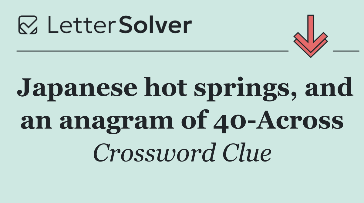 We specialize in solving many of your favorite puzzles, including the New York Times, USA Today, LA Times, Daily Themed Crosswords, and more. The "Japanese hot springs, and an anagram of 40 Across" clue from the Universal puzzle, June 23 edition, is one such example.