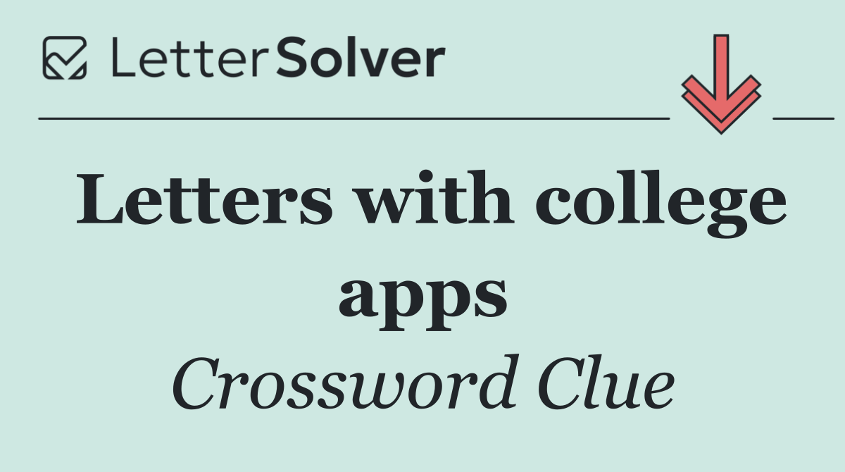 We specialize in solving many of your favorite puzzles, including the New York Times, USA Today, LA Times, Daily Themed Crosswords, and more. The "Letters with college apps" clue from the Universal puzzle, December 01 edition, is one such example.