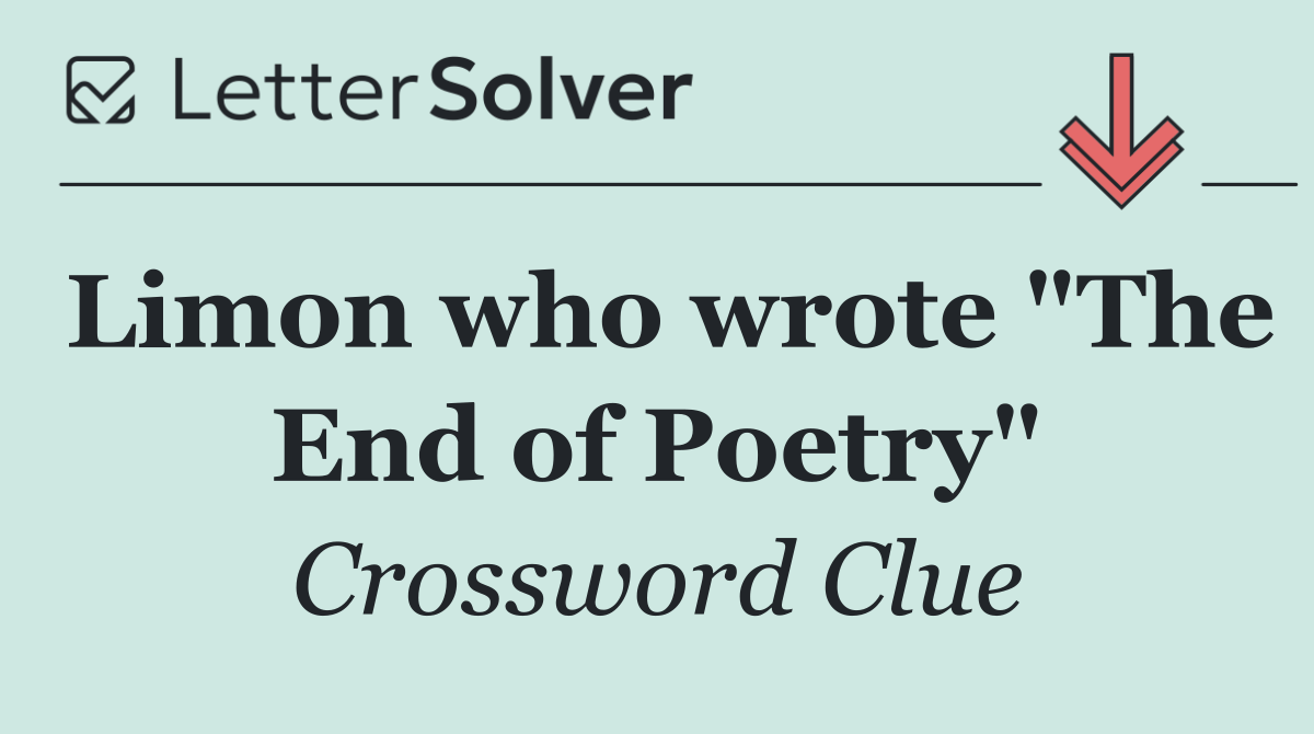 We specialize in solving many of your favorite puzzles, including the New York Times, USA Today, LA Times, Daily Themed Crosswords, and more. The "Limon who wrote "The End of Poetry"" clue from the Universal puzzle, December 29 edition, is one such example.