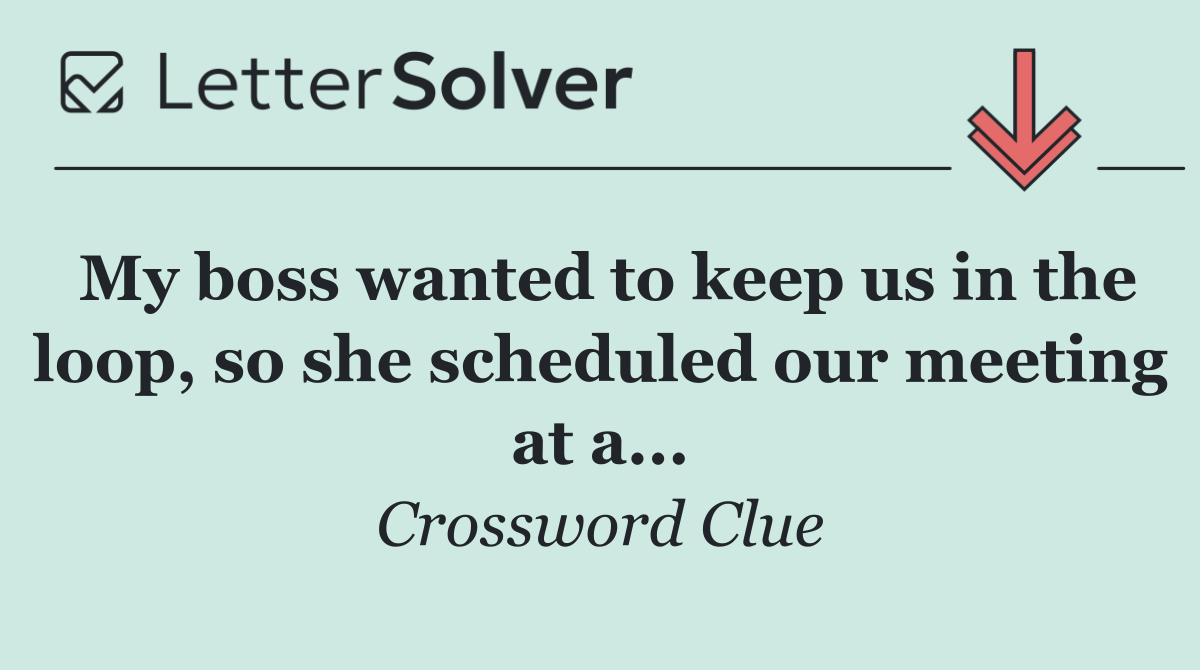 Uncover the answer to the Universal puzzle's My boss wanted to keep us in the loop, so she scheduled our meeting at a... clue right here! We cracked the code and found the 12-letter word, the exact solution to help you solve this clue and finish your daily challenge. Ready to reveal it?