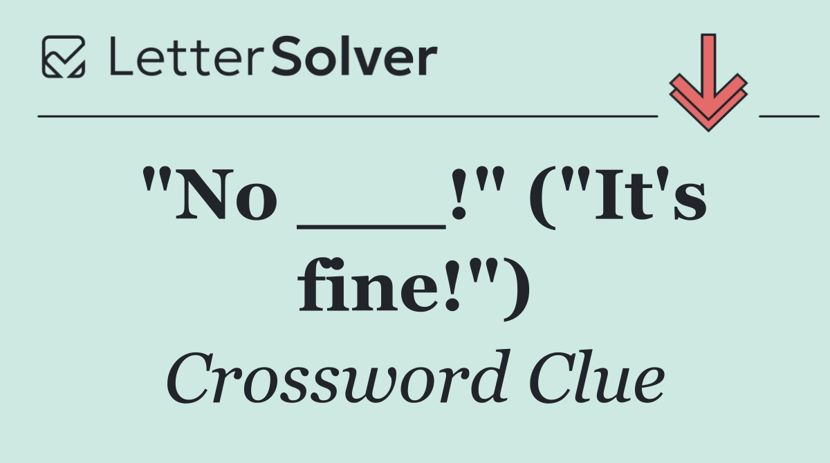 - 6. "No ___!" ("It's fine!") - Crossword Clue
