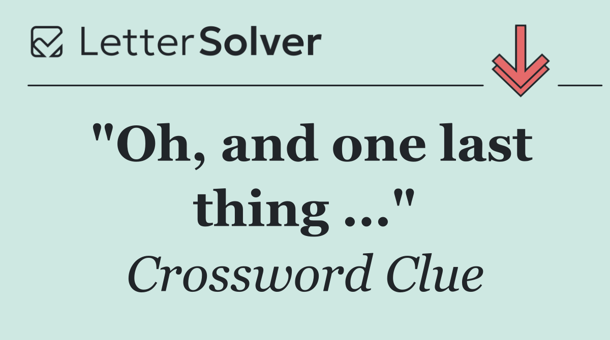 We specialize in solving many of your favorite puzzles, including the New York Times, USA Today, LA Times, Daily Themed Crosswords, and more. The ""Oh, and one last thing ..."" clue from the Universal puzzle, October 27 edition, is one such example.