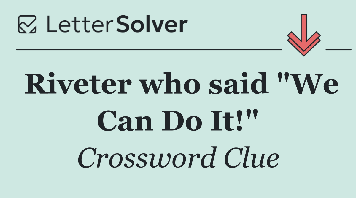 We specialize in solving many of your favorite puzzles, including the New York Times, USA Today, LA Times, Daily Themed Crosswords, and more. The "Riveter who said "We Can Do It!"" clue from the Universal puzzle, November 07 edition, is one such example.