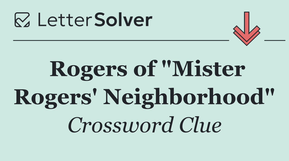 We specialize in solving many of your favorite puzzles, including the New York Times, USA Today, LA Times, Daily Themed Crosswords, and more. The "Rogers of "Mister Rogers' Neighborhood"" clue from the Universal puzzle, March 20 edition, is one such example.
