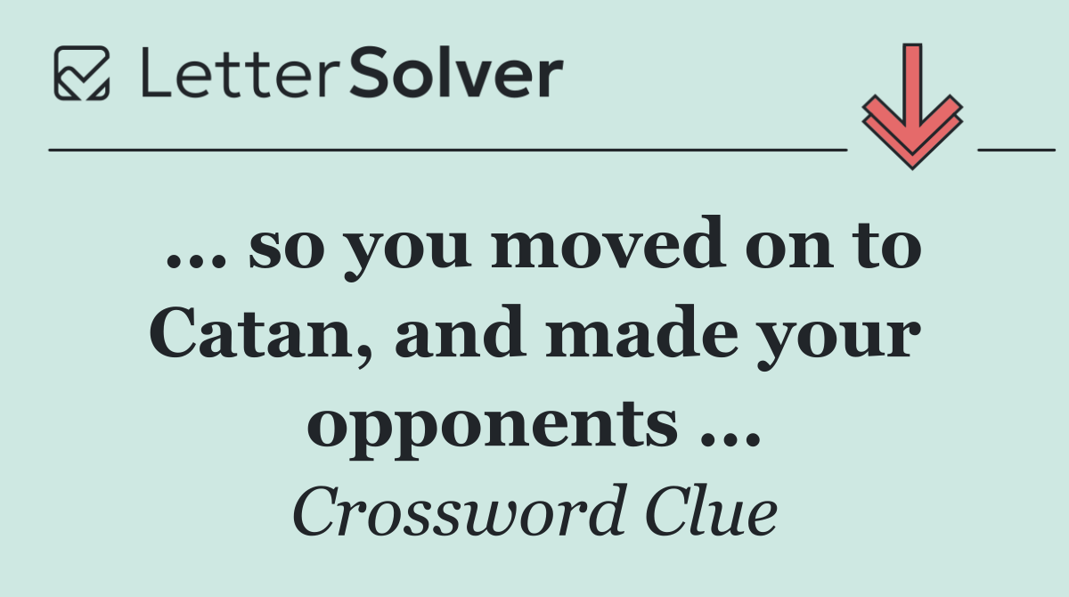 We specialize in solving many of your favorite puzzles, including the New York Times, USA Today, LA Times, Daily Themed Crosswords, and more. The "... so you moved on to Catan, and made your opponents ..." clue from the Universal puzzle, April 29 edition, is one such example.