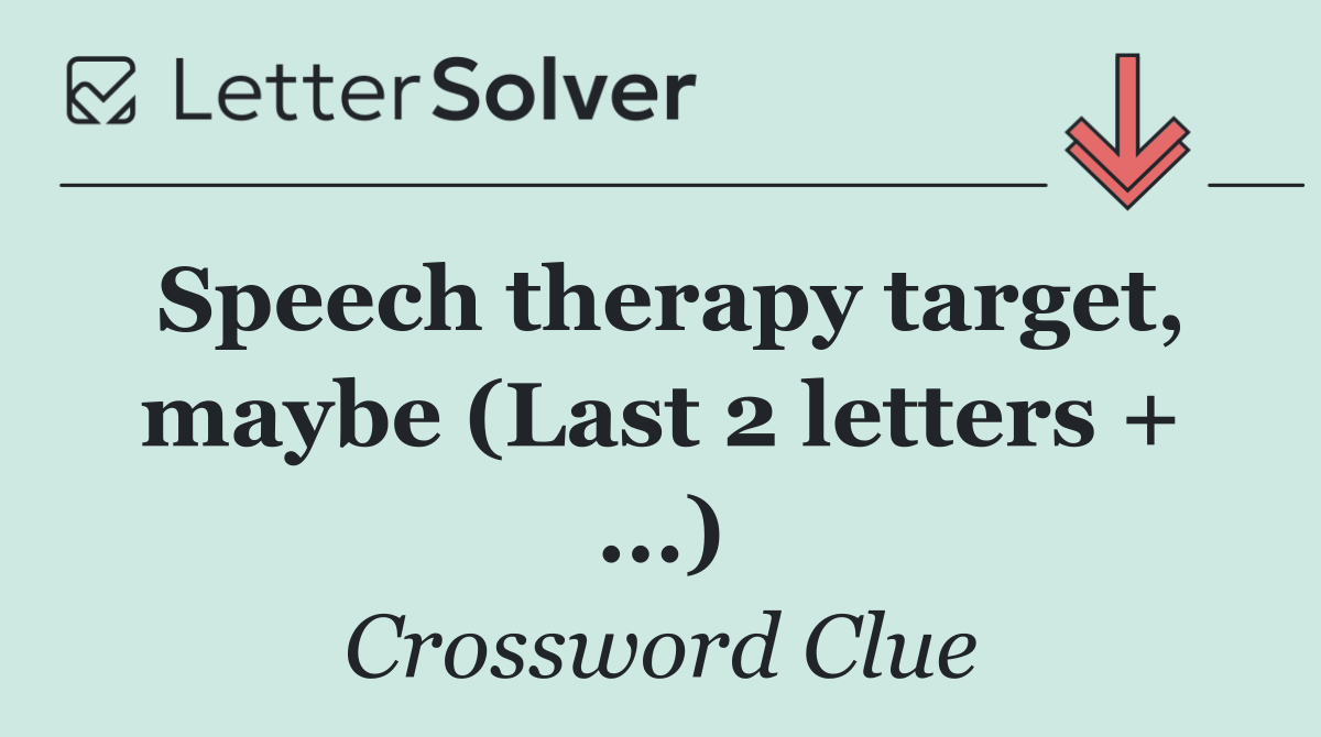 We specialize in solving many of your favorite puzzles, including the New York Times, USA Today, LA Times, Daily Themed Crosswords, and more. The "Speech therapy target, maybe (Last 2 letters + ...)" clue from the Universal puzzle, April 01 edition, is one such example.