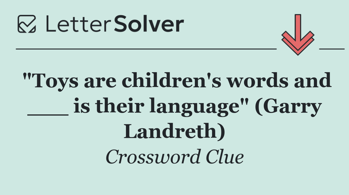 We specialize in solving many of your favorite puzzles, including the New York Times, USA Today, LA Times, Daily Themed Crosswords, and more. The ""Toys are children's words and ___ is their language" (Garry Landreth)" clue from the Universal puzzle, September 14 edition, is one such example.