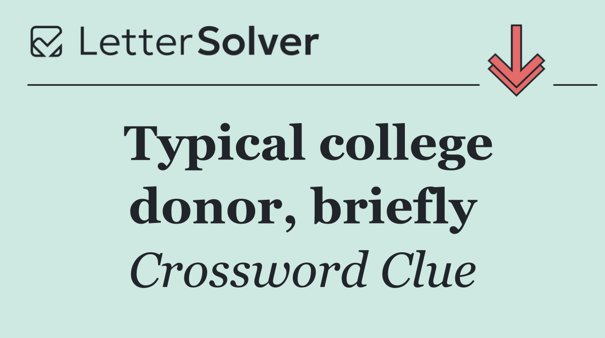 Uncover the answer to the Universal puzzle's Typical college donor, briefly clue right here! We cracked the code and found the 4-letter word, the exact solution to help you solve this clue and finish your daily challenge. Ready to reveal it?