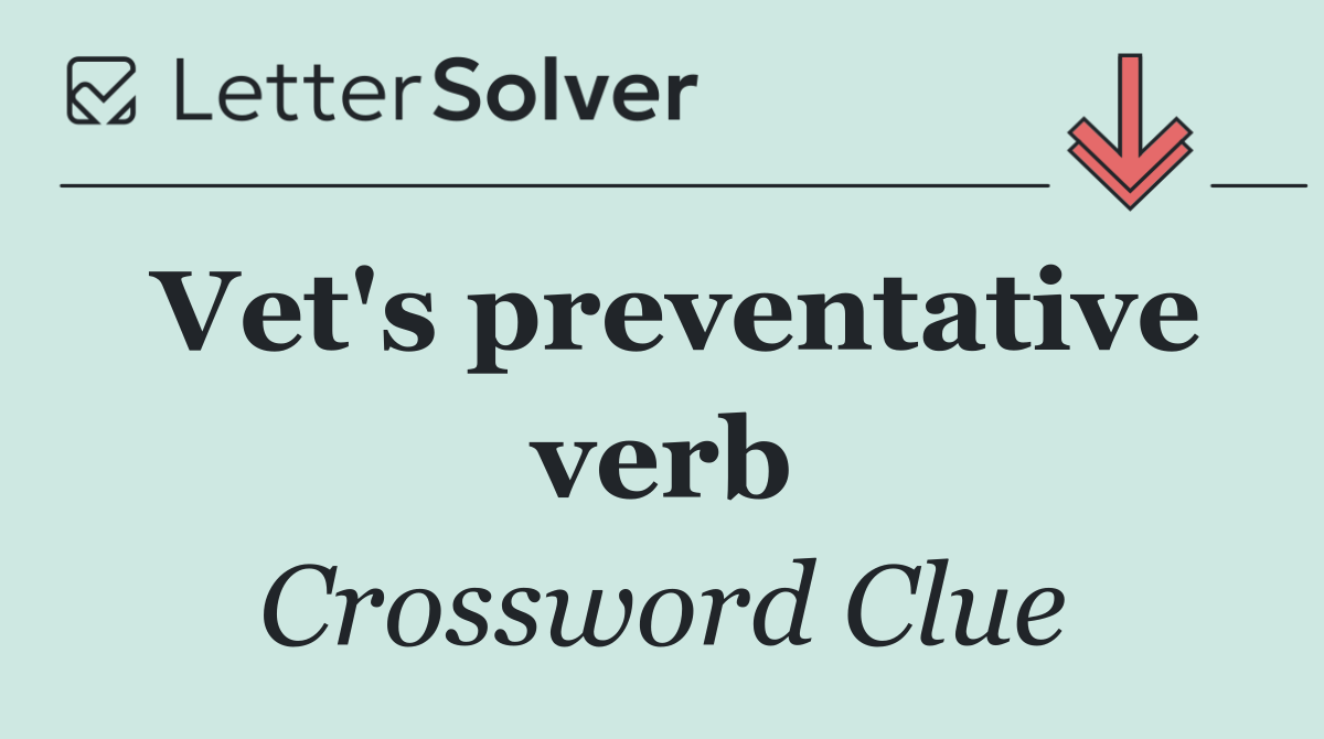 We specialize in solving many of your favorite puzzles, including the New York Times, USA Today, LA Times, Daily Themed Crosswords, and more. The "Vet's preventative verb" clue from the Universal puzzle, July 09 edition, is one such example.
