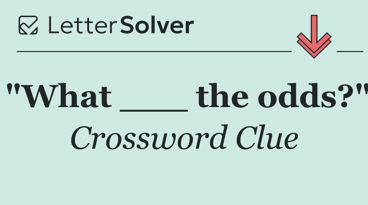 We specialize in solving many of your favorite puzzles, including the New York Times, USA Today, LA Times, Daily Themed Crosswords, and more. The ""What ___ the odds?"" clue from the Universal puzzle, January 09 edition, is one such example.