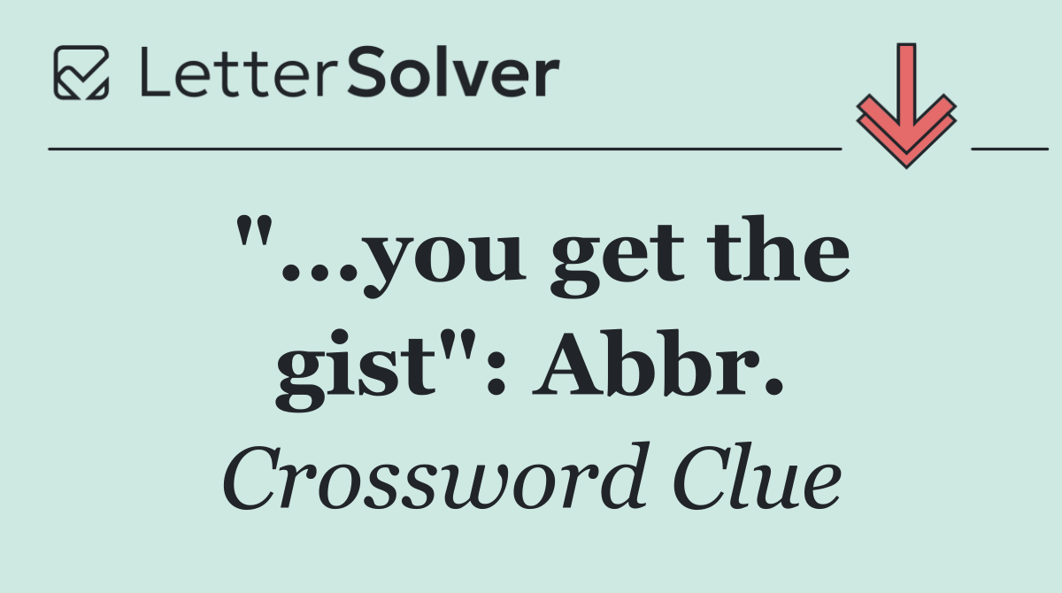 Uncover the answer to the Universal puzzle's "...you get the gist": Abbr. clue right here! We cracked the code and found the 3-letter word, the exact solution to help you solve this clue and finish your daily challenge. Ready to reveal it?