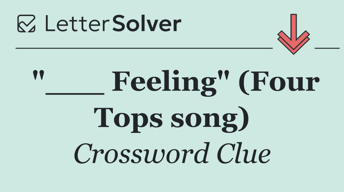 We specialize in solving many of your favorite puzzles, including the New York Times, USA Today, LA Times, Daily Themed Crosswords, and more. The ""___ Feeling" (Four Tops song)" clue from the Wall Street Journal puzzle, May 17 edition, is one such example.