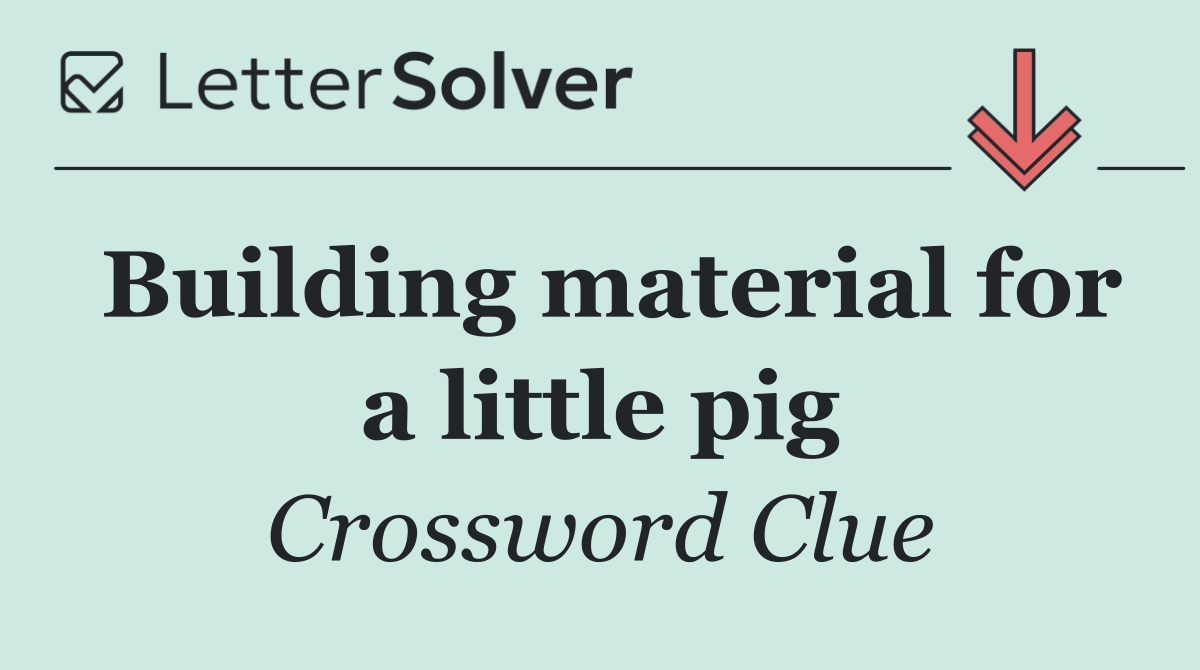 We specialize in solving many of your favorite puzzles, including the New York Times, USA Today, LA Times, Daily Themed Crosswords, and more. The "Building material for a little pig" clue from the Wall Street Journal puzzle, October 09 edition, is one such example.