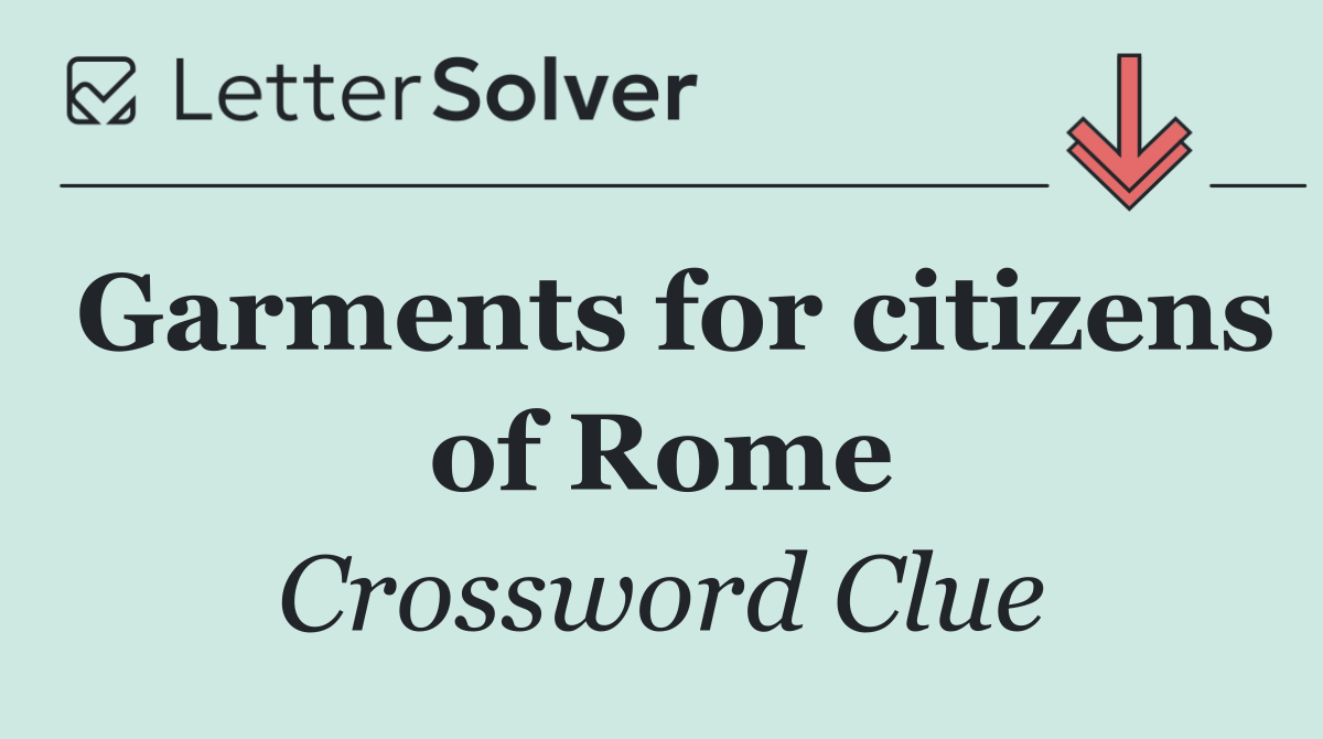 We specialize in solving many of your favorite puzzles, including the New York Times, USA Today, LA Times, Daily Themed Crosswords, and more. The "Garments for citizens of Rome" clue from the Wall Street Journal puzzle, October 28 edition, is one such example.